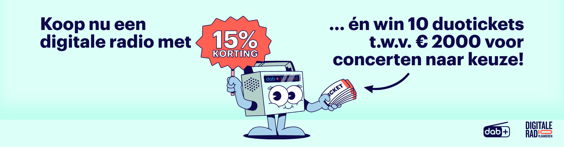 Tijdens de Week van de Digitale Radio krijg je deze én volgende week 15% korting op je nieuwe digitale radio. Deze actie loopt van 6 tot en met 19 oktober 2025 bij alle deelnemende winkels.